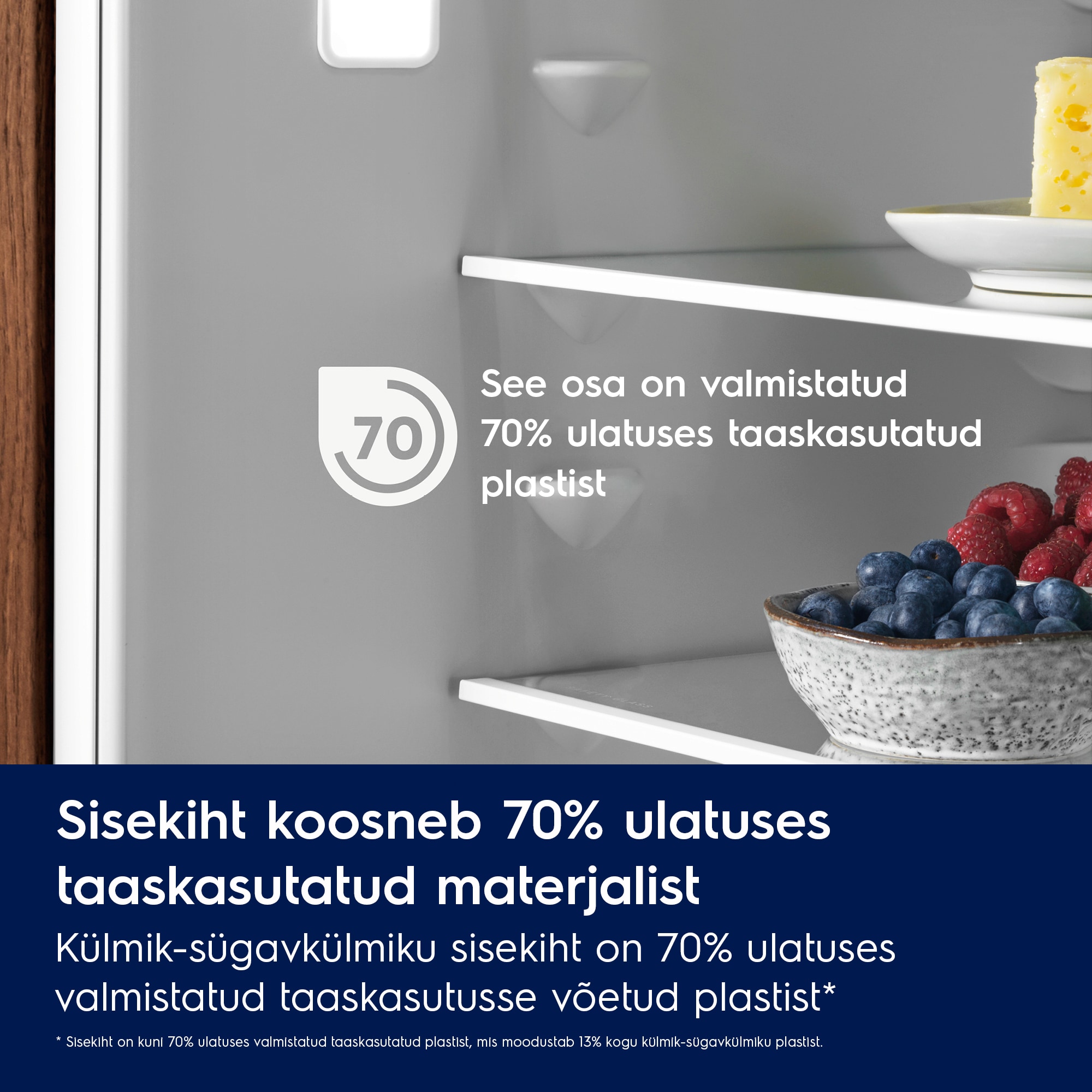 *rHIPS sisekiht on valmistatud kuni 70% ulatuses taaskasutatud plastist, mis moodustab 13% kogu külmiku plastikust“
