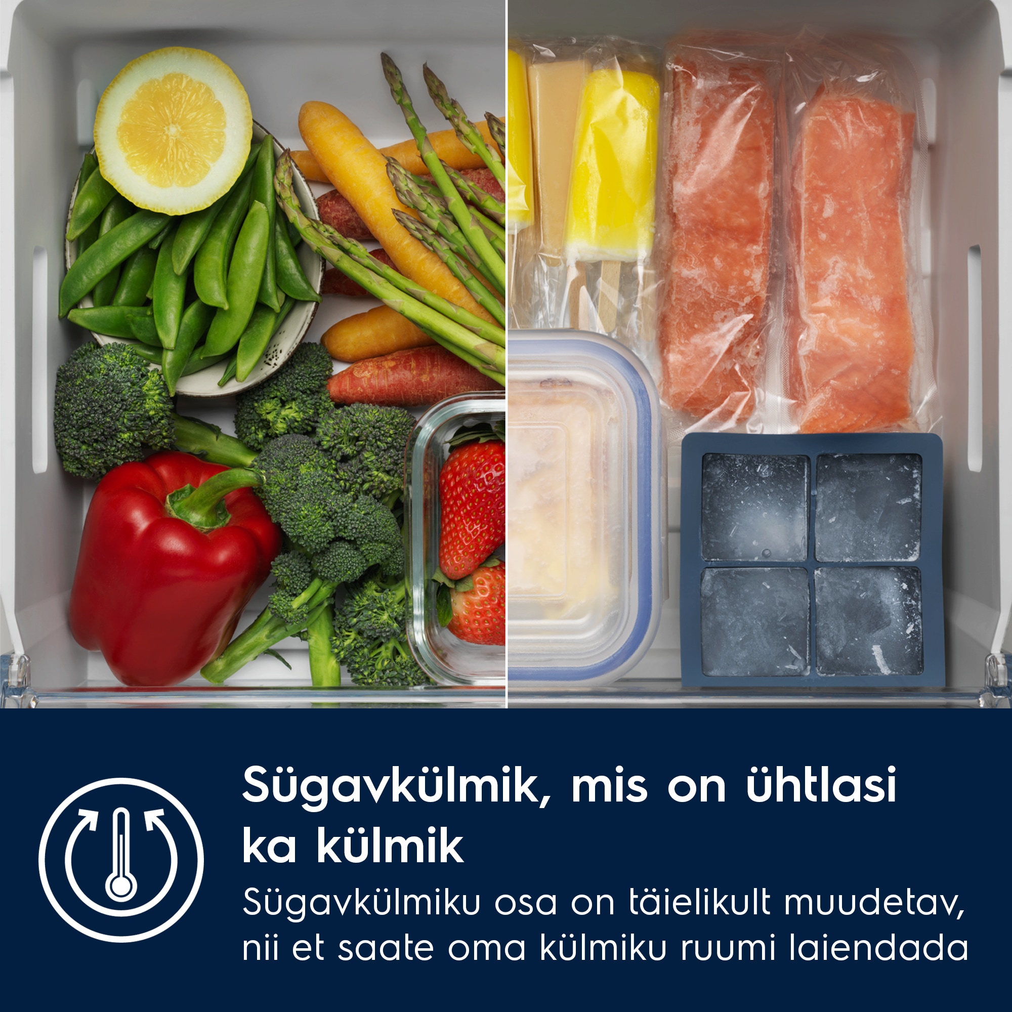 Reguleeritav sahtel MultiChill 0° viib su toiduvalmistamise uuele tasemele, olles kohandatud liha ja kala säilitamiseks. Rakenduse kaudu saad aktiveerida toiduprogramme jookide jahutamiseks, külmutatud toodete sulatamiseks või toidujääkide säilitamiseks.