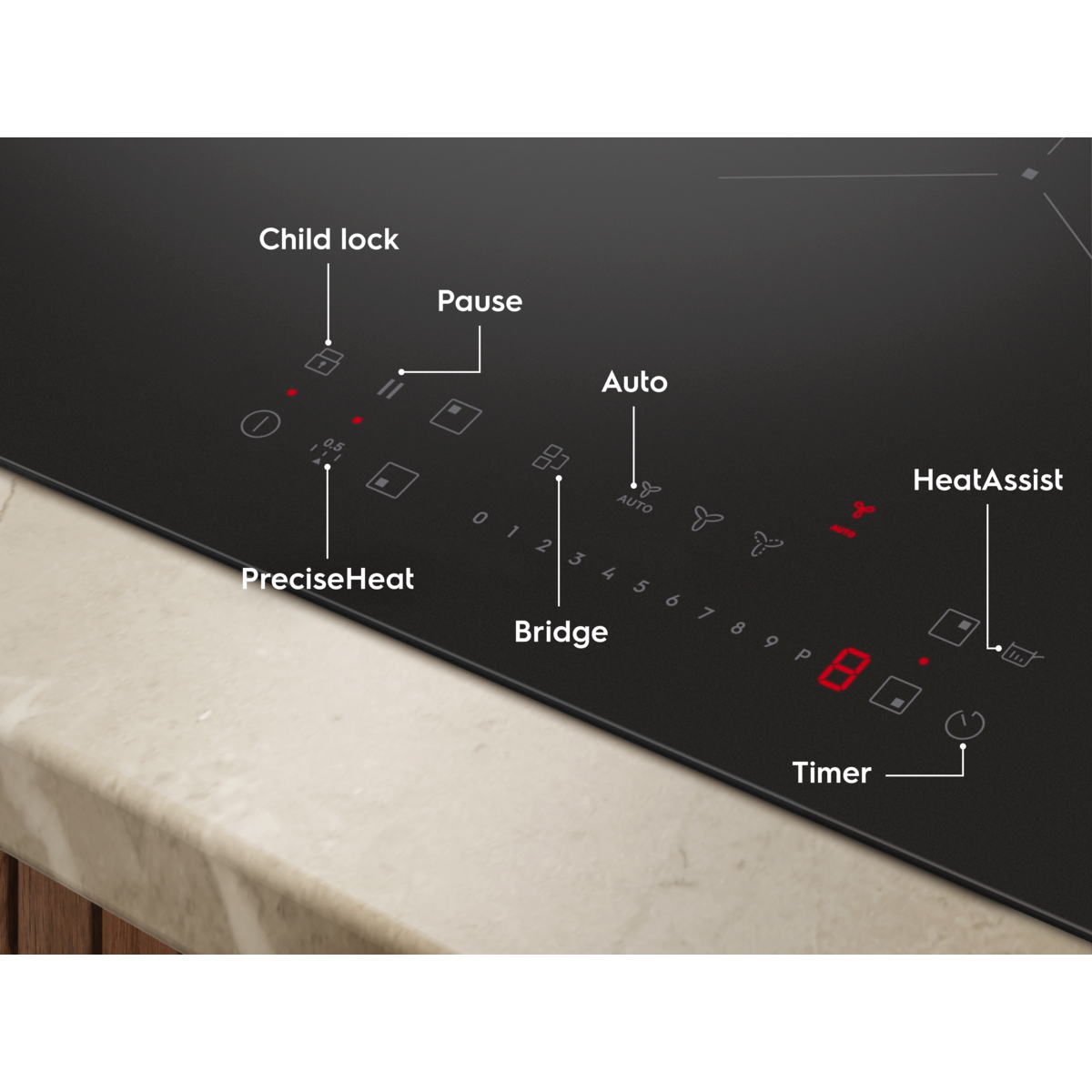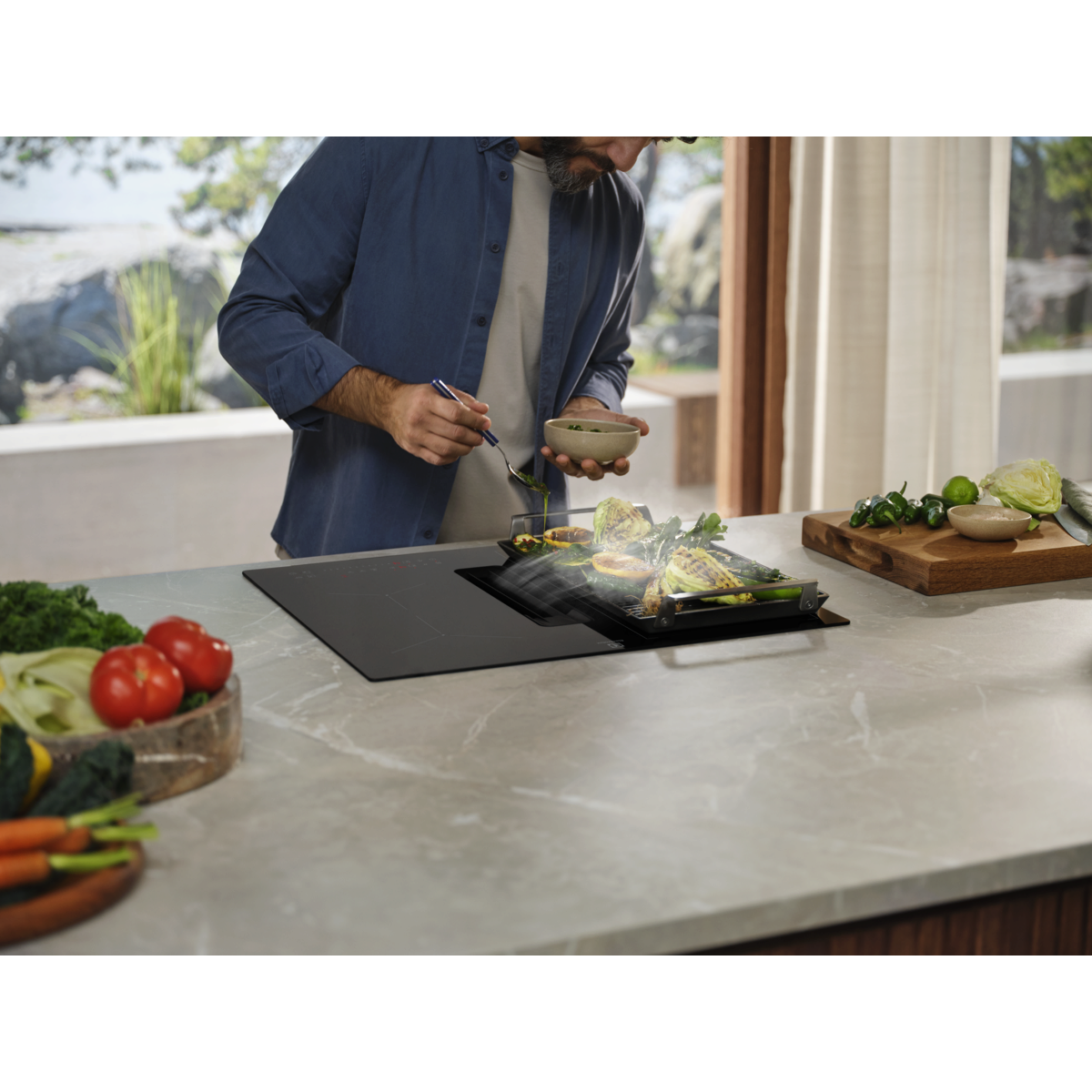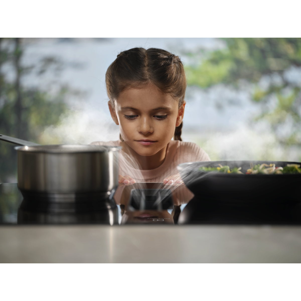 Naudi mitmekülgseid eeliseid, mida pakub induktsioonpliidiplaat, mis mahub 60 cm laia kappi ja millel on sisseehitatud õhupuhasti optimaalseks õhuvooluks. 600 Bridge Extractor pliidiplaat on varustatud ka sillafunktsiooniga, mis võimaldab ühendada kaks küpsetustsooni üheks suuremaks alaks.