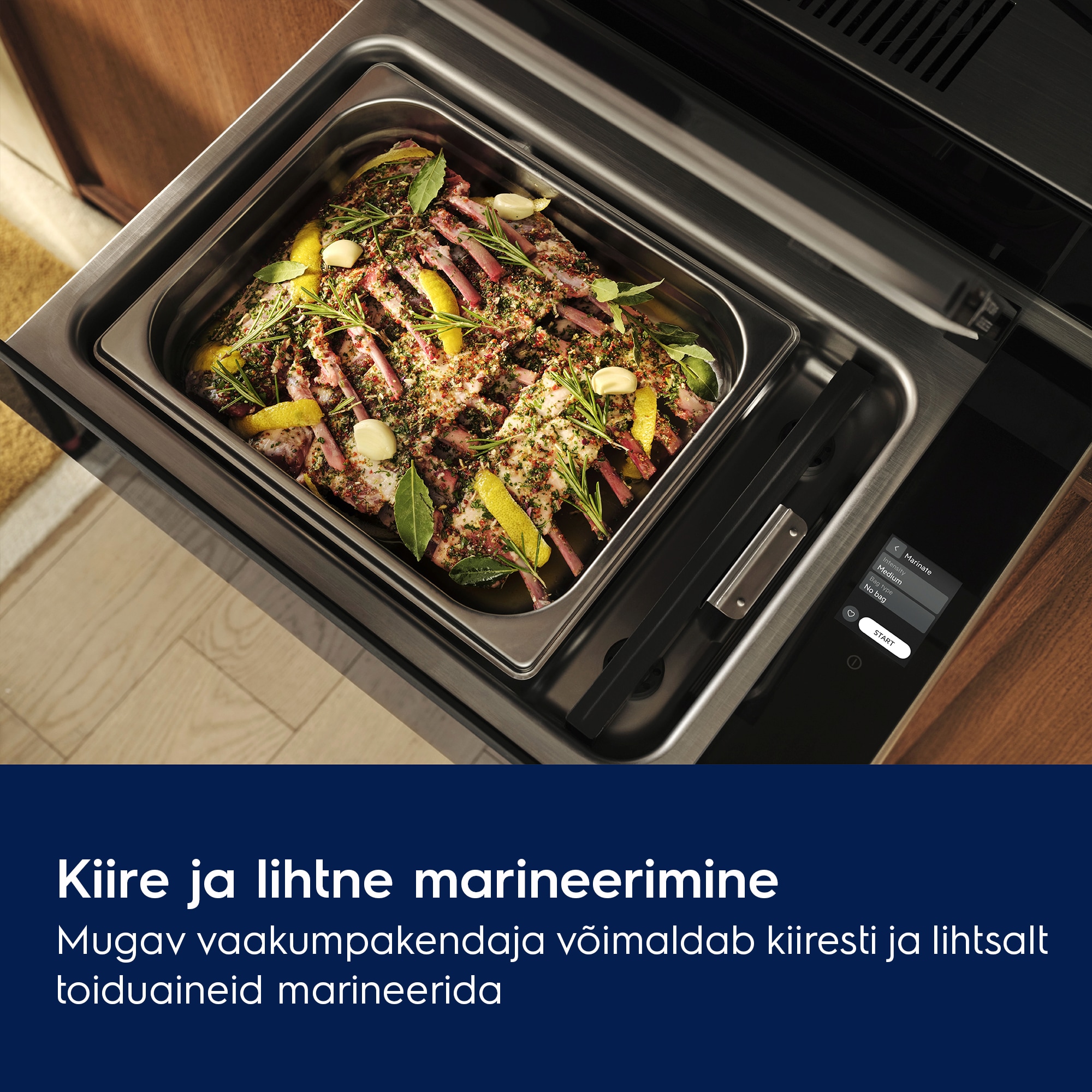 FunktsioonidVacuum seal, Seal, Clean shells, Containers, External Vacuum, Dehydrate, Marinate, Pickle, Infuse, Tenderise, Oil Maintenance, Adjustable sealing time, Favourites, Recents