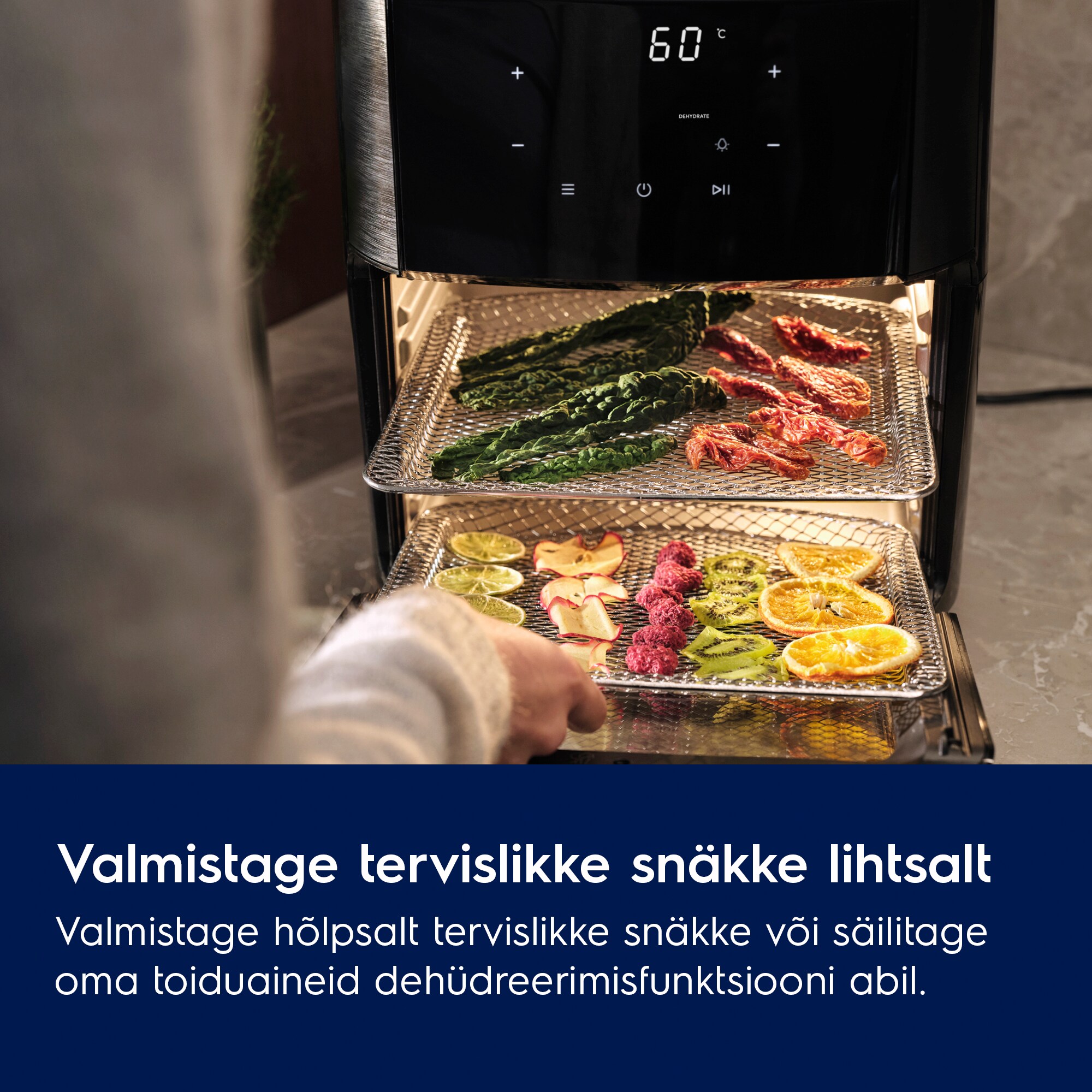 Dehüdratsiooni funktsiooniga saate hõlpsalt valmistada tervislikke suupisteid