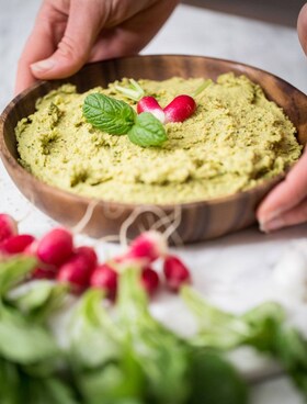 Purusta küüslauk. Lisa kõik koostisosad eelneva nimekirja järjekorras kannmikserisse. Püürestage soovitud konsistentsi saavutamiseni.