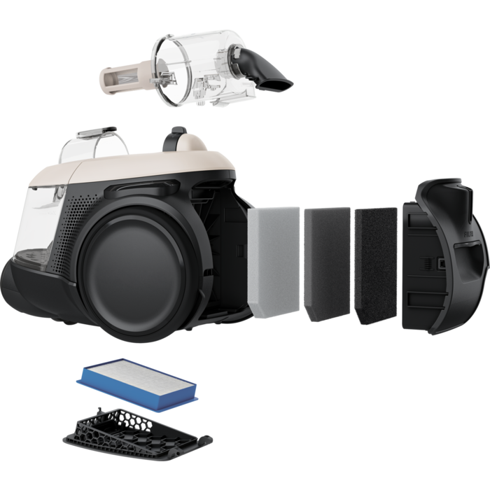 Tsüklontehnoloogia ja ergonoomilise disainiga tolmukotita tolmuimeja Hygienic 600 Bagless on võimsa jõudlusega. See kasutatud plast on valmistatud vähemalt pooles ulatuses ringlussevõetud plastist ja puhastamises see kompromisse ei tee, kaasas on peente osakeste filter Allergy Plus.