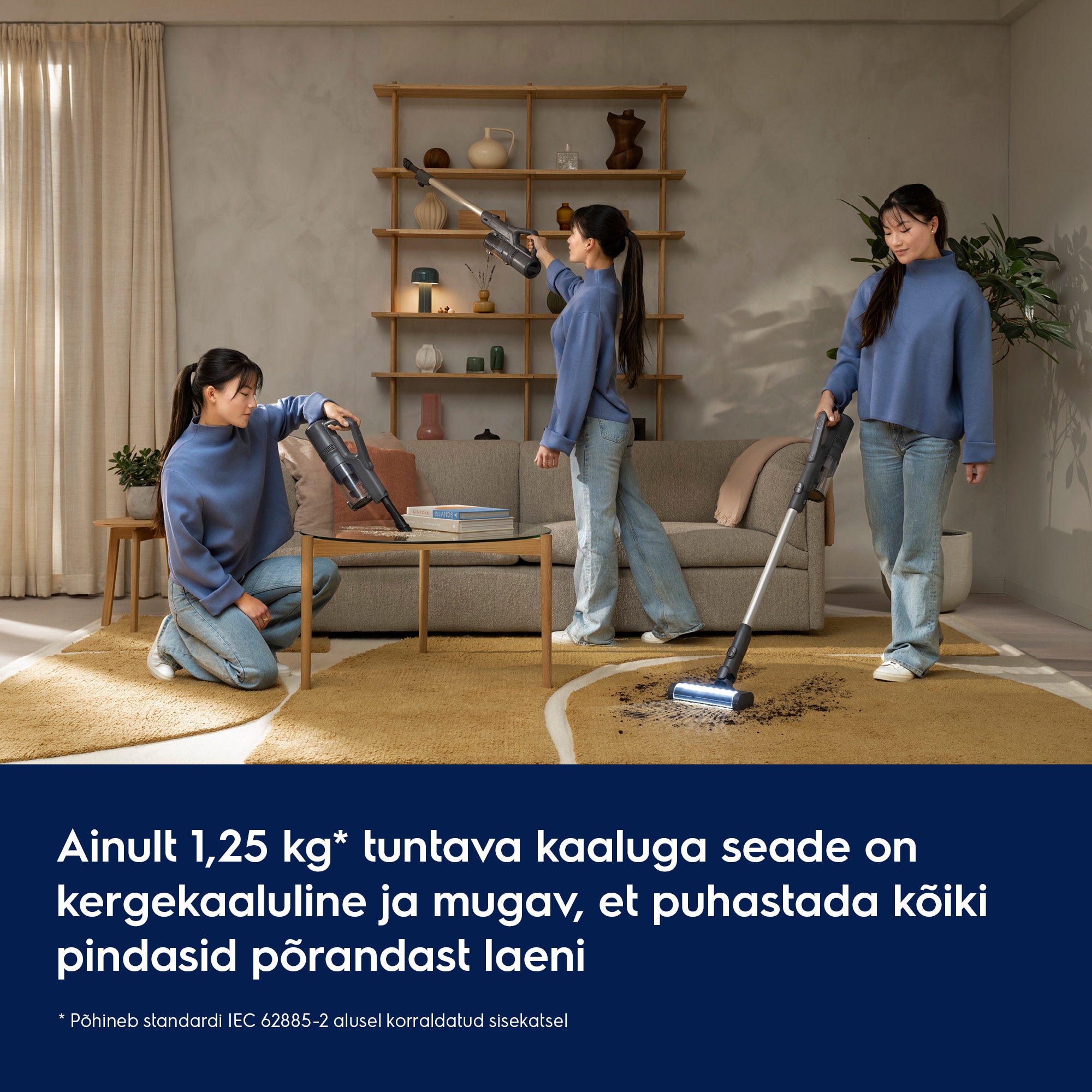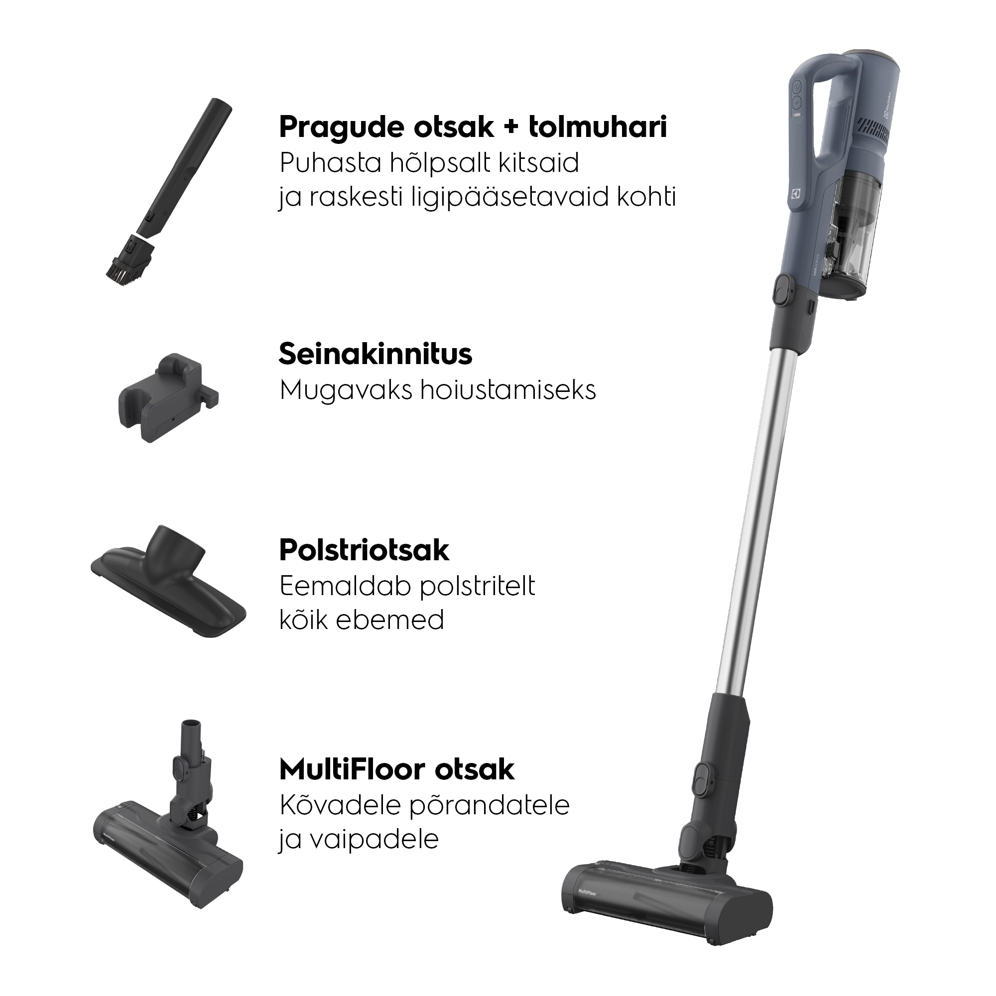 Võimas jõudlus tagab kuni 99% tõhususega* tolmuimemise kõvadelt põrandatelt. Juhtmevaba ja kerge disain lubavad vabalt liikuda ja tolmuanuma tühjendamine on väga kerge. Kõik on lihtne, sujuv ja sisse ehitatud.
