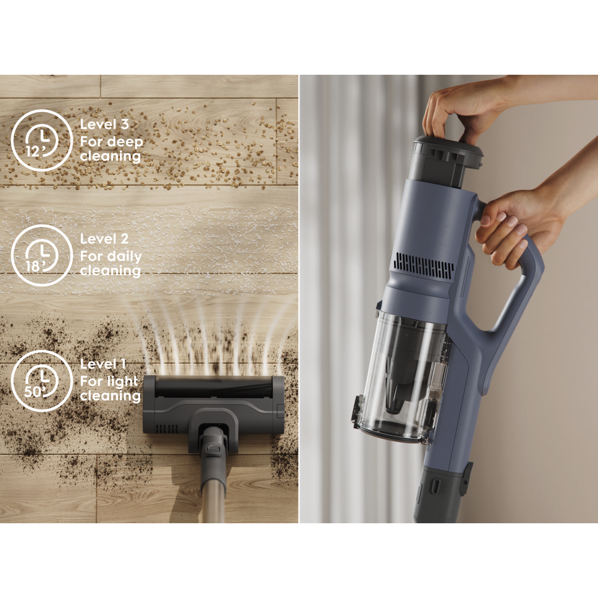 Kuni 50 minutit juhtmevaba puhastusjõudu – koos vahetatava akuga