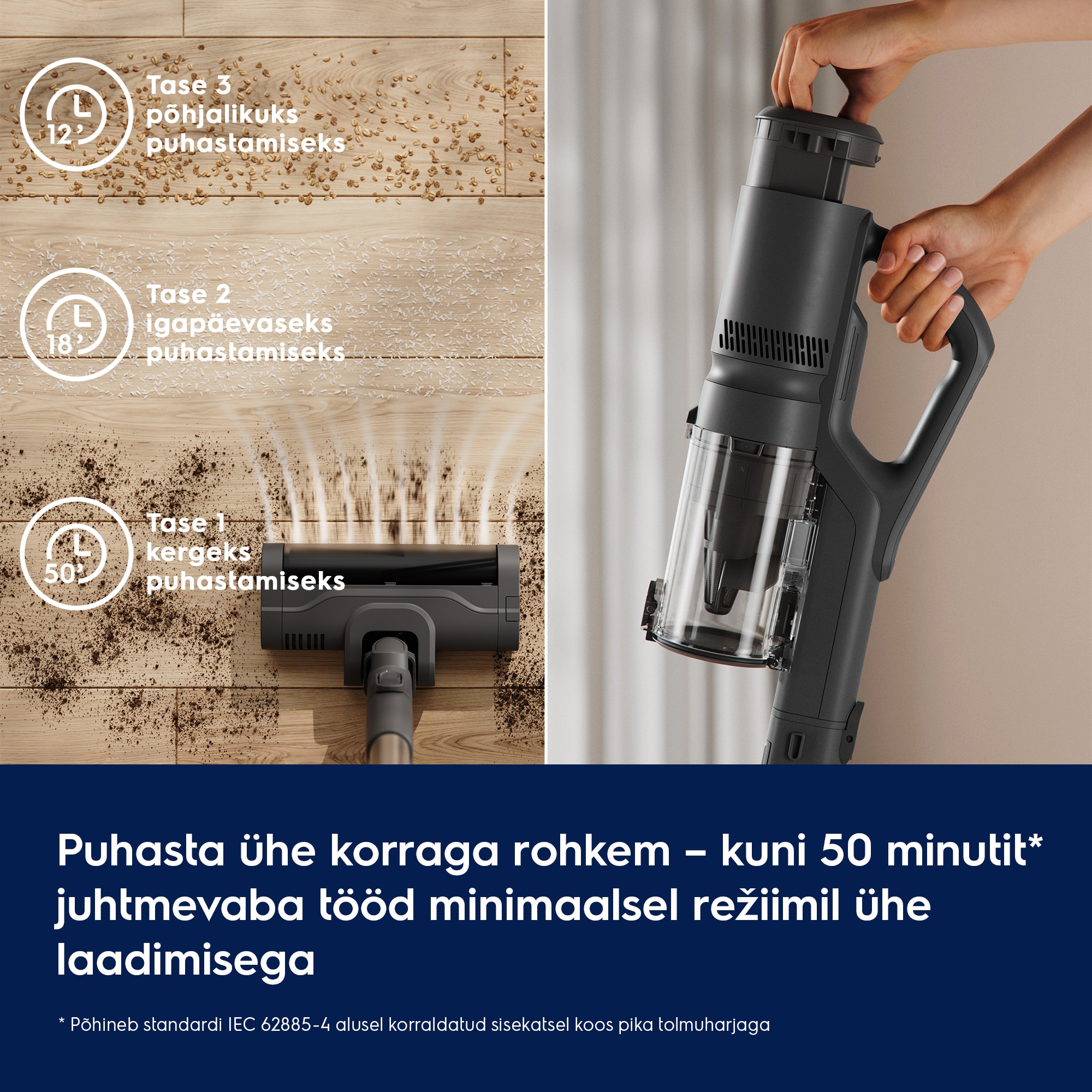 * Põhineb IEC 62885-4 standardi kohasel sisemistel katsetel miinimumrežiimis koos pika tolmuharjaga.