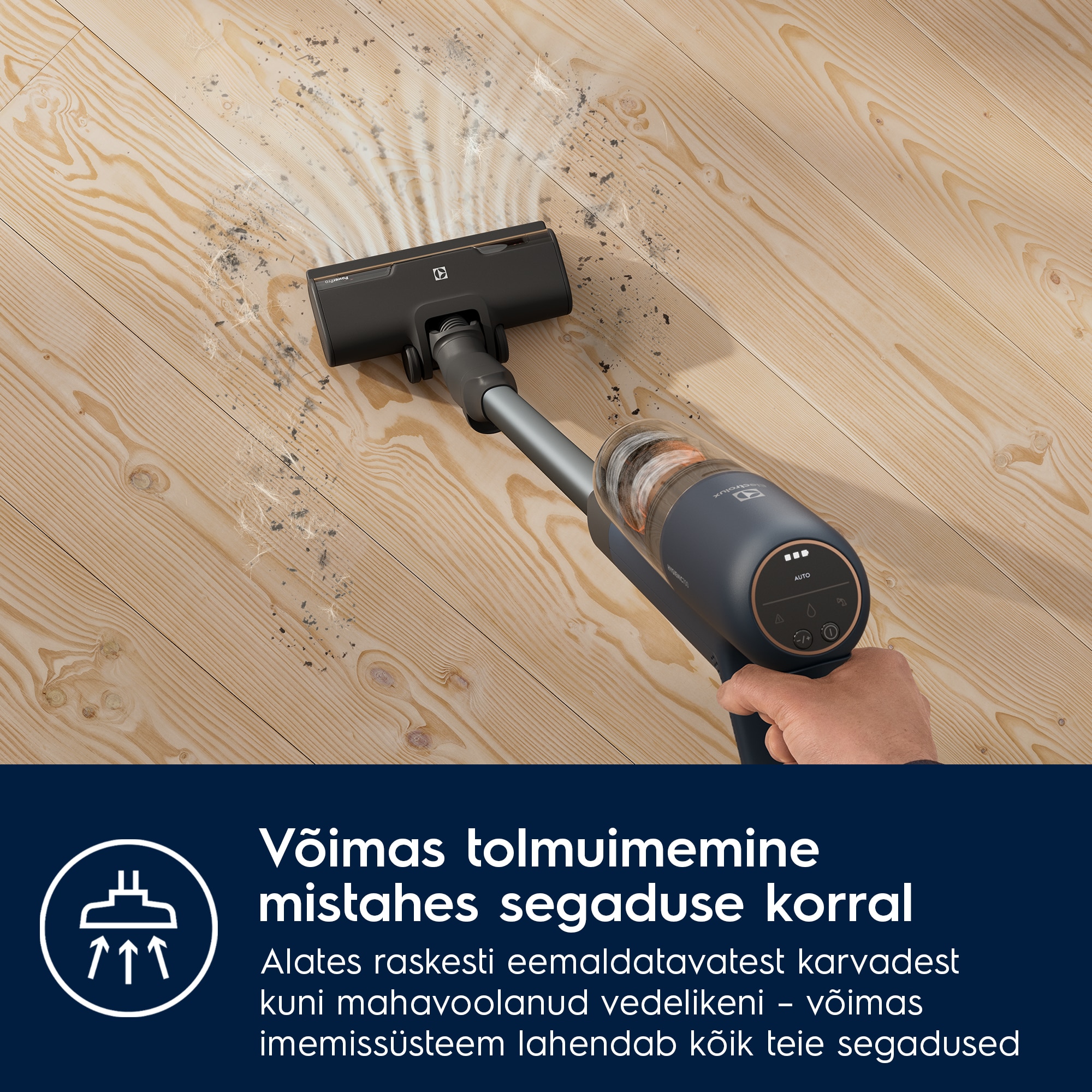 See Electroluxi juhtmeta tolmuimeja on üks meie tõhusamaid puhastusvahendeid, mis säästab kuni 47% energiat* ja pikendab automaatrežiimiga tööaega. Puhastaja, põhiotsik ja laadimisalus on valmistatud kuni 60% ringlussevõetud plastist kõigist kasutatud plastidest** Electroluxi EcoLine'i juhtmeta tolmuimejate valik põhineb automaatrežiimi funktsioonil, mis aitab tarbijatel kasutamise ajal energiat säästa.