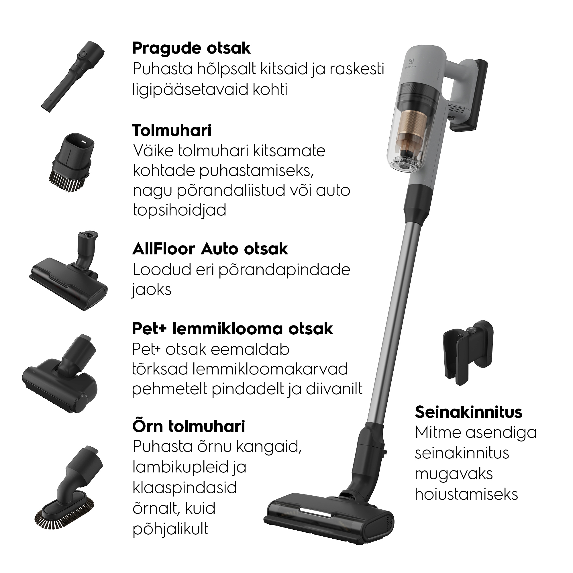 * Võrreldes eelmise Electrolux 700 seeria juhtmeta akutolmuimejaga.