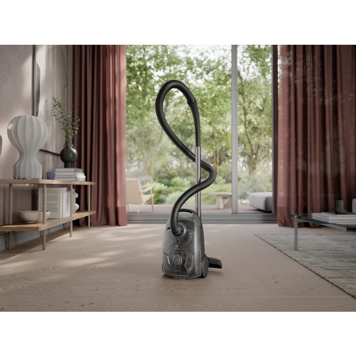 Tutvustame 300 Bagged tolmuimejat – meie seni kõige kompaktsemat tolmuimejat, mis tagab iga liigutusega tugeva tolmukogumise. Mugavalt tolmuimejas hoitavate tarvikute ja DustPro otsikuga olete alati varustatud veatult puhaste põrandate jaoks.