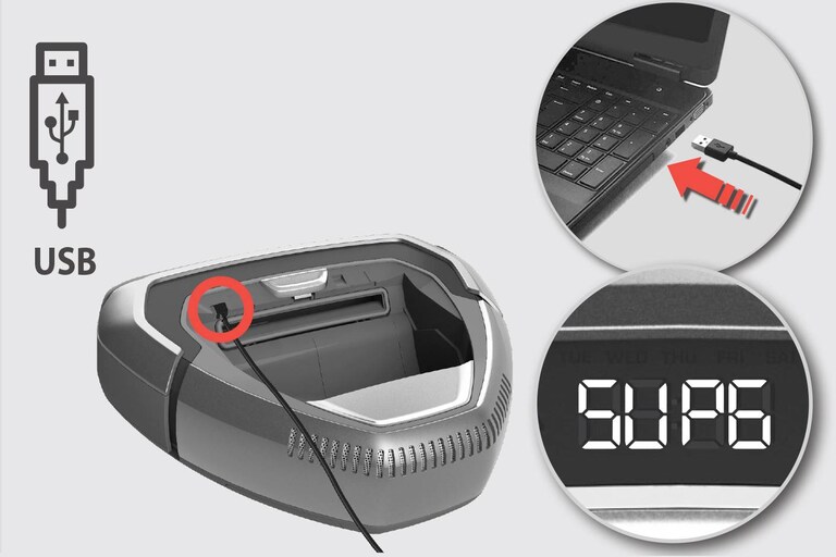 Step 3Ühendage robot arvutis oleva mikro-USB-kaabliga. Arvuti tuvastab roboti kui USB massmäluseadme. Roboti kuva näitab kirja „SUPG”. (Veenduge, et kasutaksite USB-kaablit, mis pole mõeldud ainult laadimiseks, vaid ka andmete edastamiseks.)